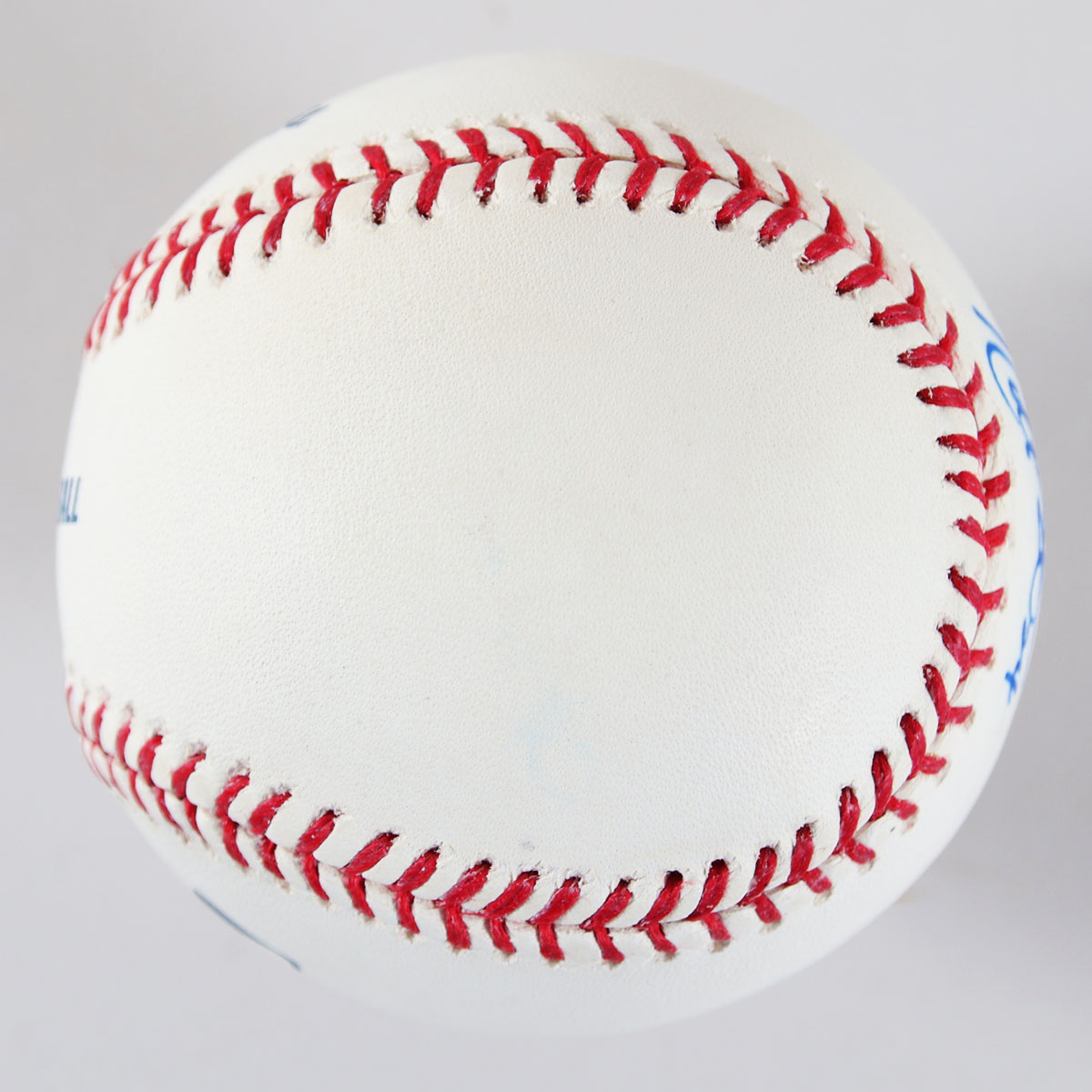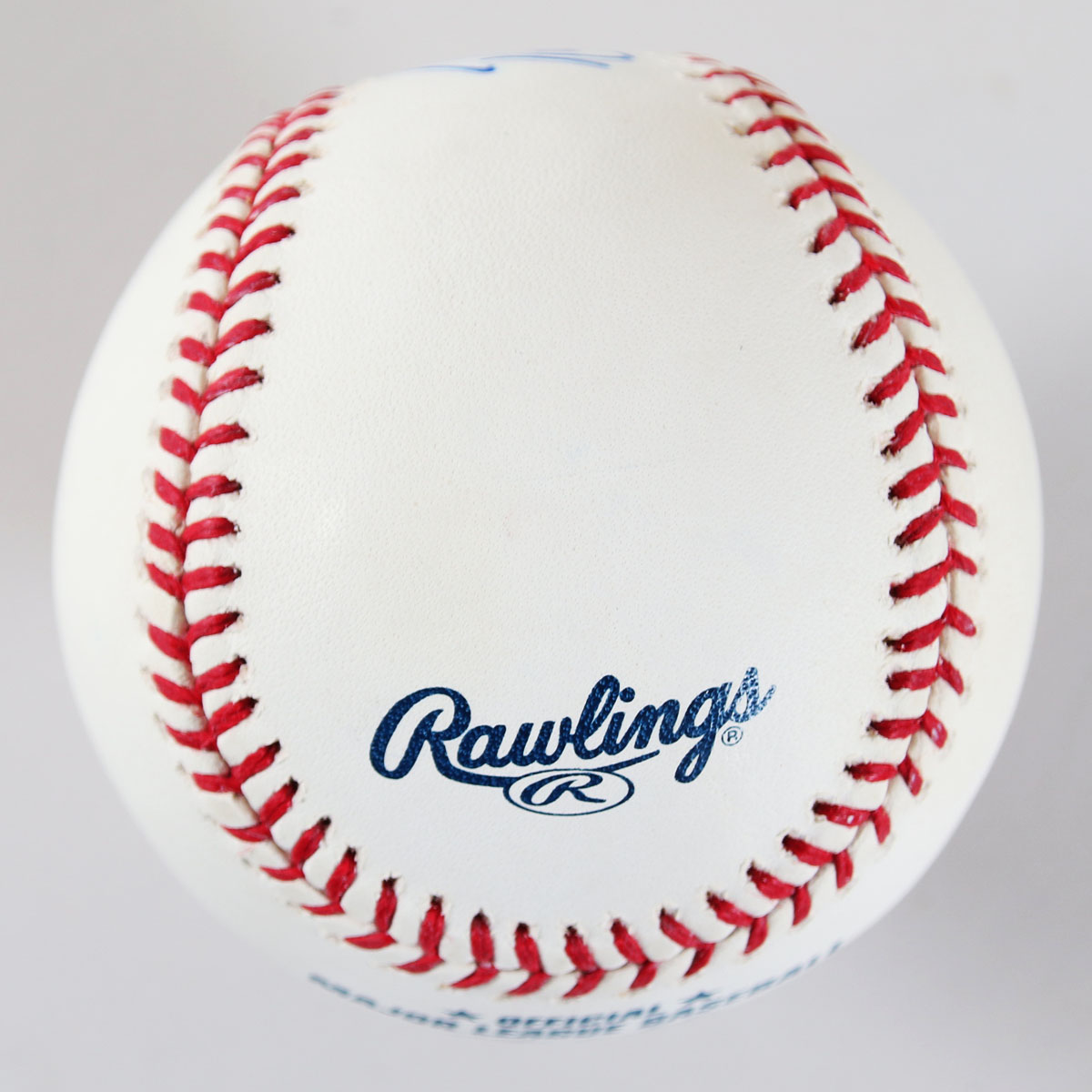Presented is an OML (Selig) baseball autographed by Robert Stephenson. He signed it on the sweet spot in blue felt tip pen (“9”).