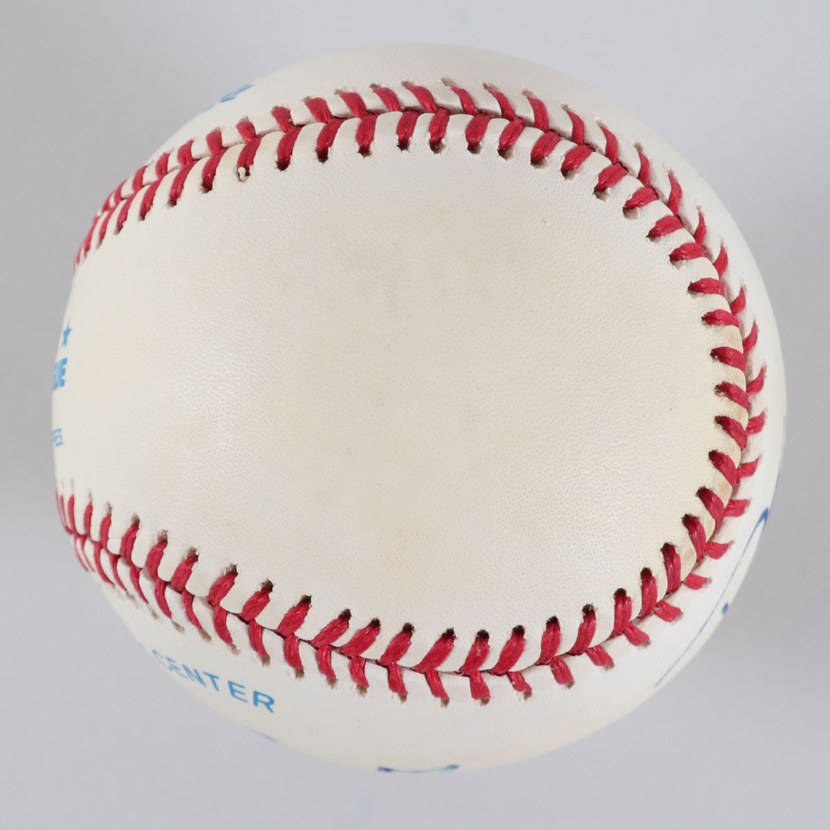 This ball is from one of the largest and most comprehensive collections of autographed baseballs in the world. Altogether they were easily displayable in custom shelf form and alphabetically displayed nonetheless. The choice of medium was visually easy for the encyclopedic collector who put these together. It took several decades to amass these rare autographs of the most prominent entertainers, historical figures, and sports players. It proved quite difficult to acquire autographs of non-ballplayers on such an odd object (a baseball) but diligence proved otherwise and that it’s possible. So, now with the collection complete and his shelves empty there’s only one thing left to do….bid on this item and start the challenge to see how far you can take it.