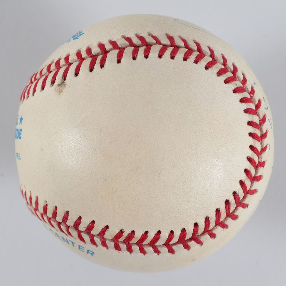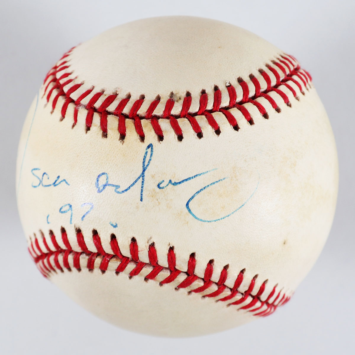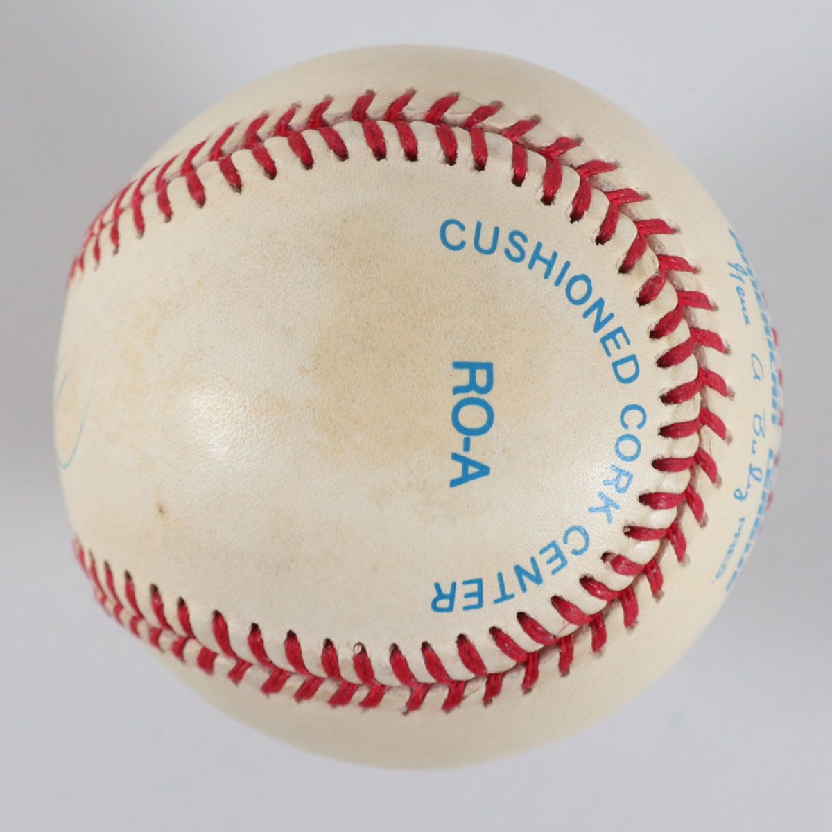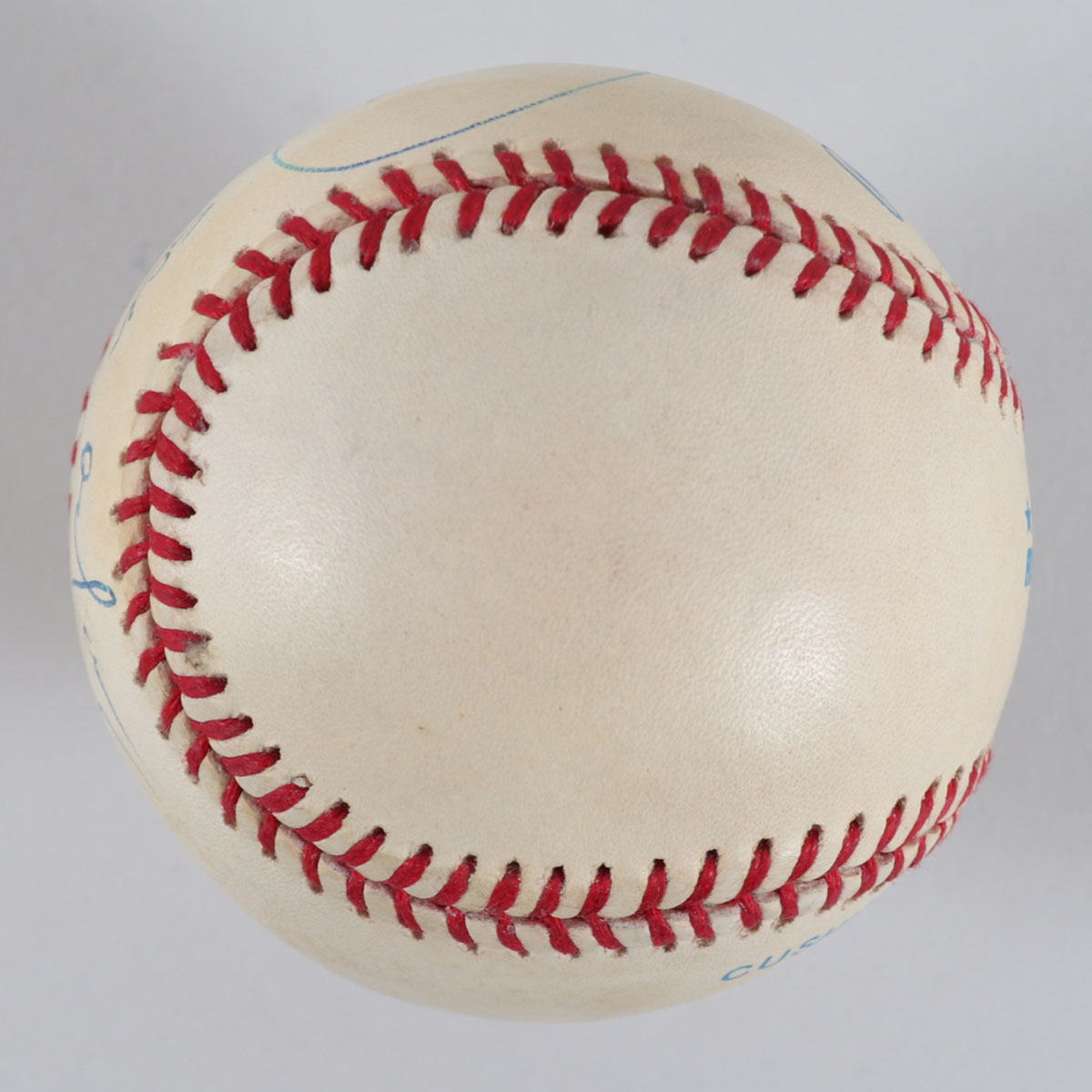 This ball is from one of the largest and most comprehensive collections of autographed baseballs in the world. Altogether they were easily displayable in custom shelf form and alphabetically displayed nonetheless. The choice of medium was visually easy for the encyclopedic collector who put these together. It took several decades to amass these rare autographs of the most prominent entertainers, historical figures, and sports players. It proved quite difficult to acquire autographs of non-ballplayers on such an odd object (a baseball) but diligence proved otherwise and that it’s possible. So, now with the collection complete and his shelves empty there’s only one thing left to do….bid on this item and start the challenge to see how far you can take it.