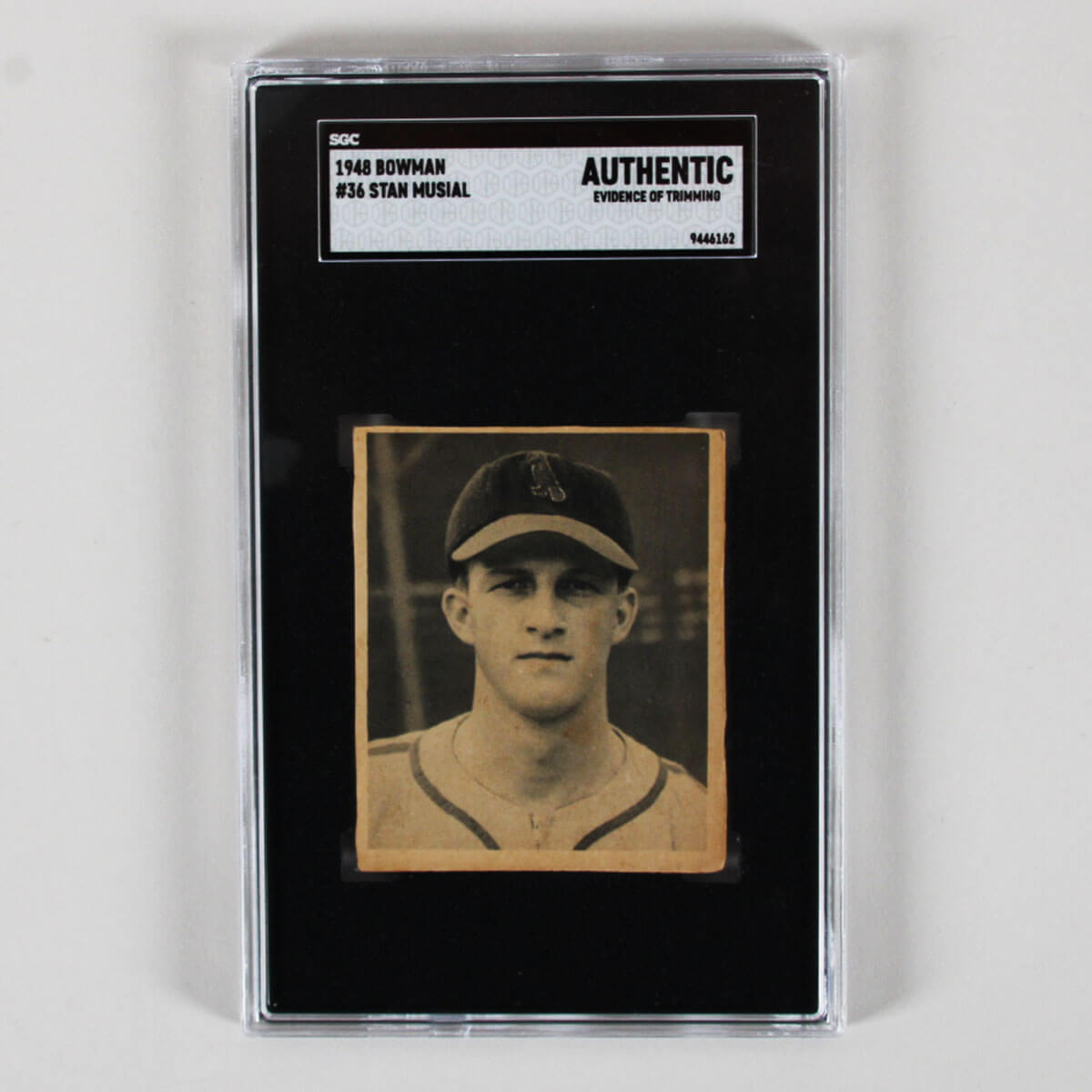 For sale is a 1948 Bowman #36 Stan Musial graded SGC Authentic.
