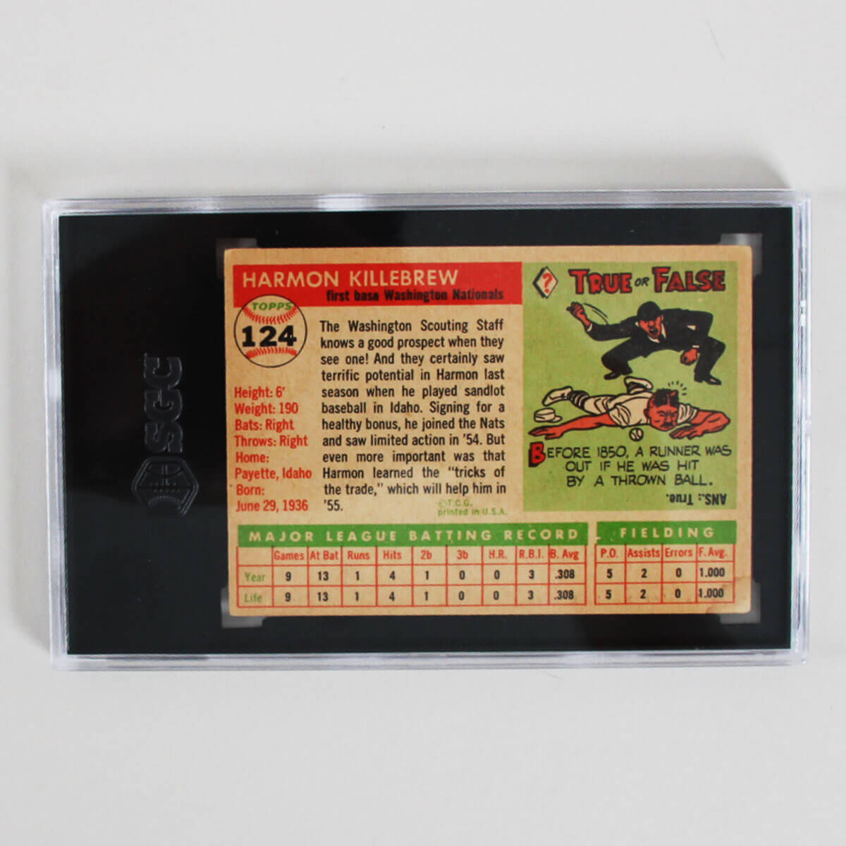Offered is a 1955 Topps Baseball card #124 Harmon Killebrew RC (Rookie Card), graded SGC 3