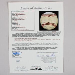 1956 Cleveland Indians Team Signed Baseball. Offered is a Reach baseball (OAL, Harridge – green print) signed by 30 members of the 1956 Cleveland Indians.