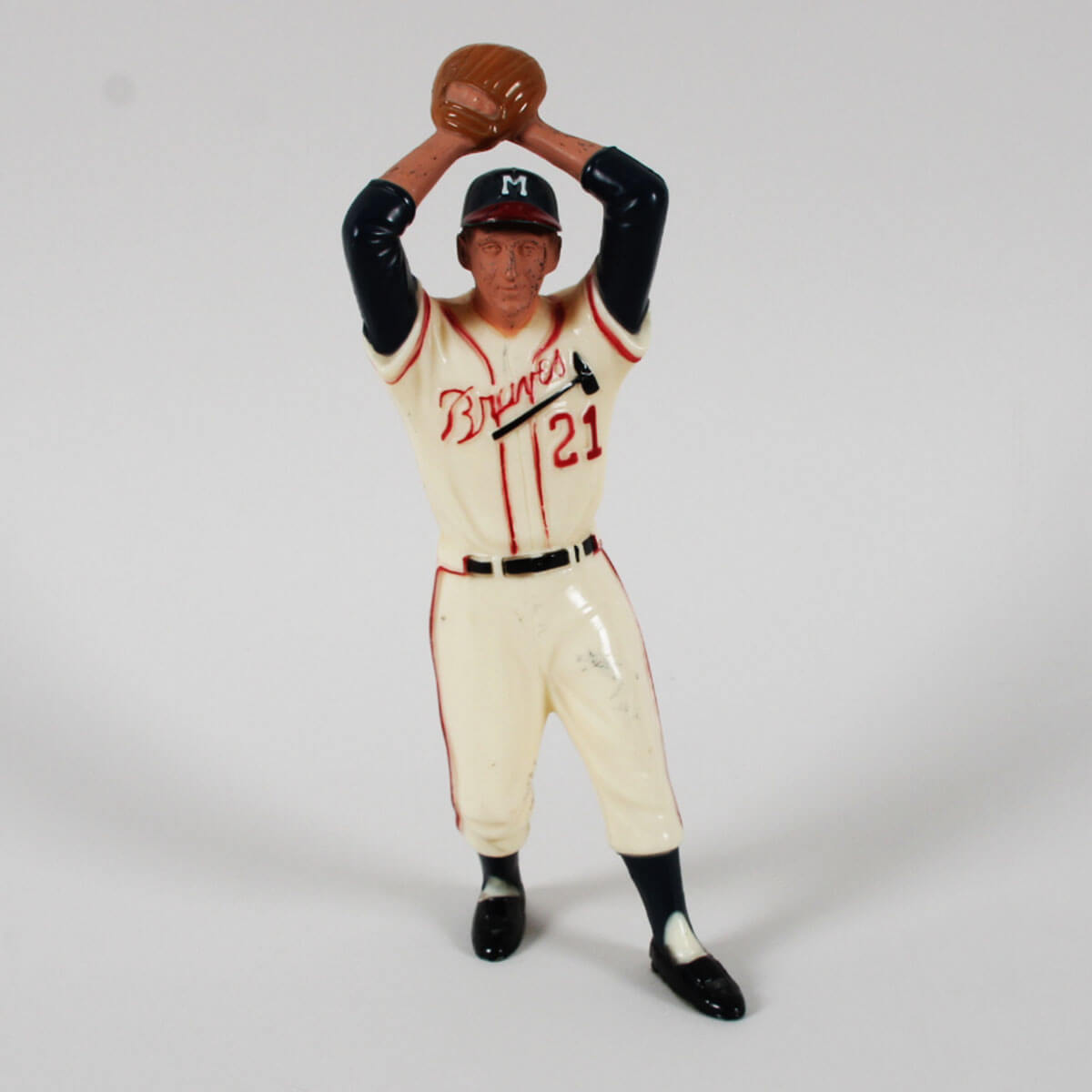 Original Vintage 1958-62 Hartland Statue of Warren Spahn, a Hall of Fame Pitcher for the Milwaukee Braves. The statue has discoloration around its face and throwing hand. Also has some marks on his pants.