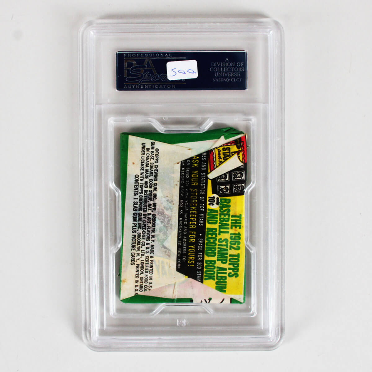 1965 Topps Baseball Unopened 5-cent Wax Pack in 1962 wrapper., Graded PSA 6 Ex-Mt. This super-desirable, unopened, and factory-sealed wax pack of 1965 Topps Baseball cards could contain Mint-condition examples of various stars, Rookie cards, and more.