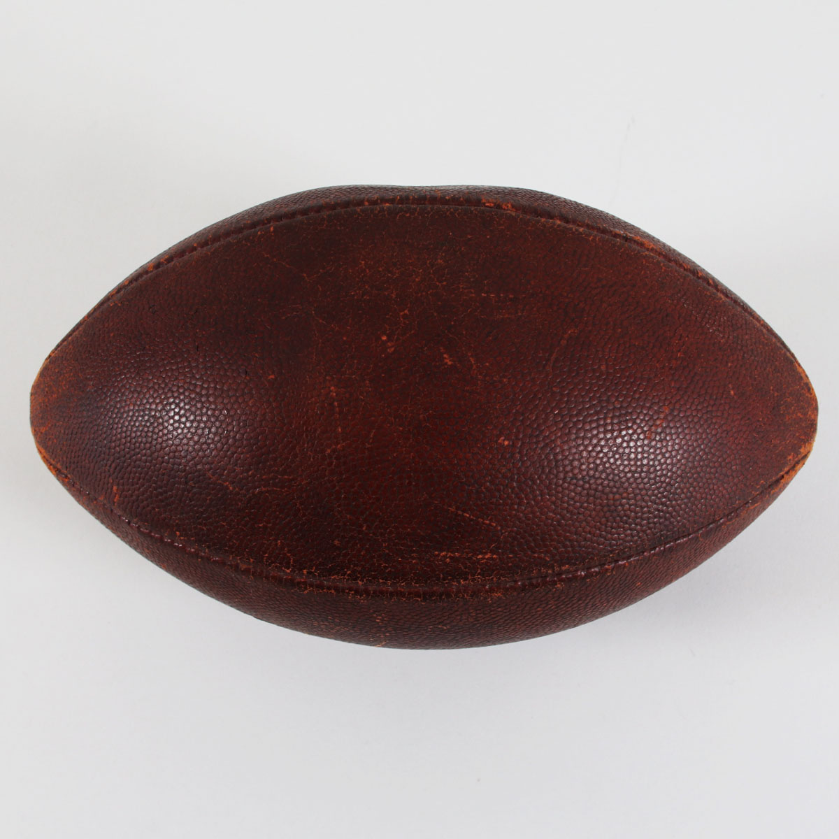 Pete Rozelle is the patriarch of the NFL. No other figure had an impact on the league like that of the Hall of Fame commissioner. This “The Duke” football is the same one that was used in the 1960s. Distributed by Thorp Sporting Goods, this Wilson-made pigskin exhibits moderate wear. Per their stampings, these particular footballs were never available commercially; they were, instead, the exclusive domain of the NFL. All of the stampings are still distinct.