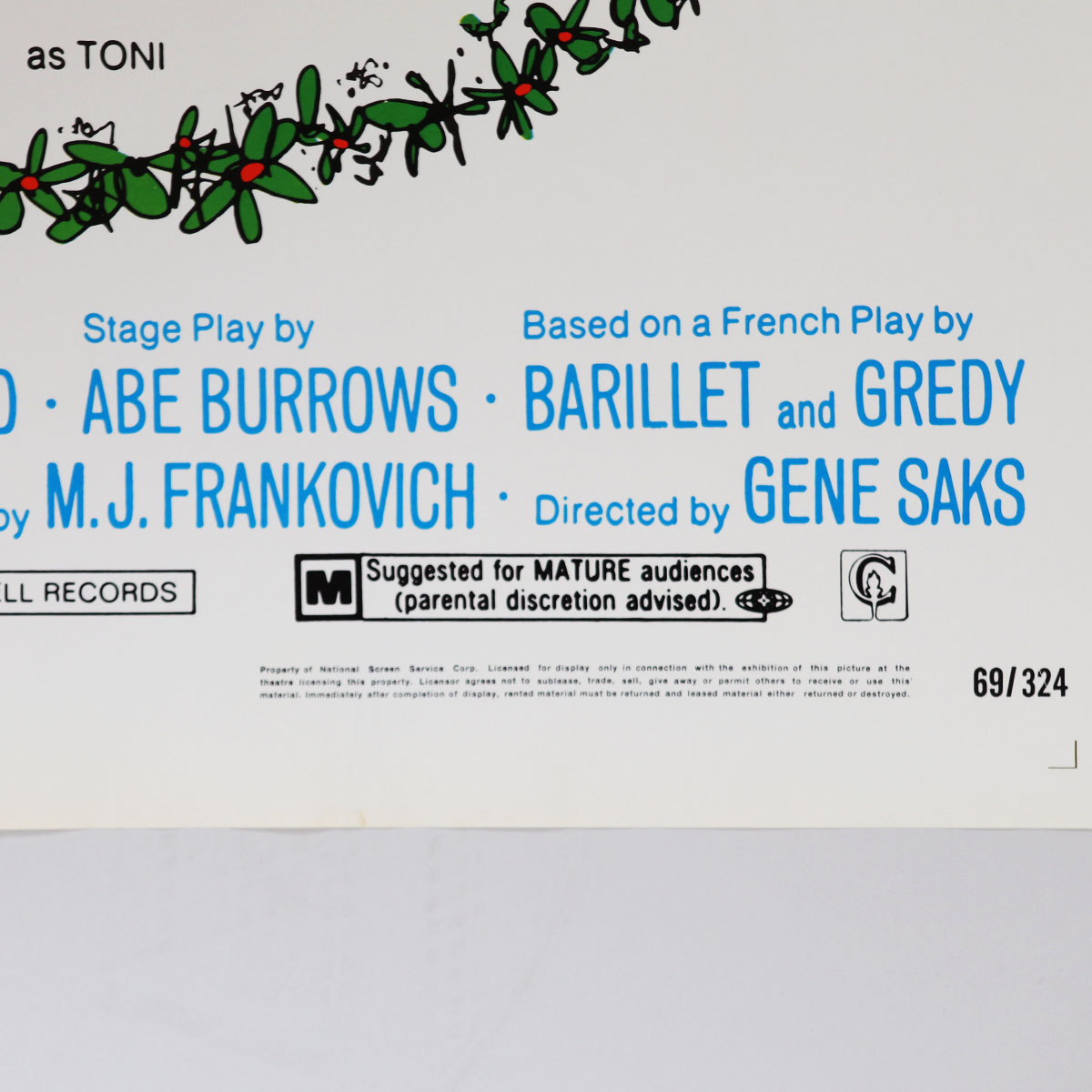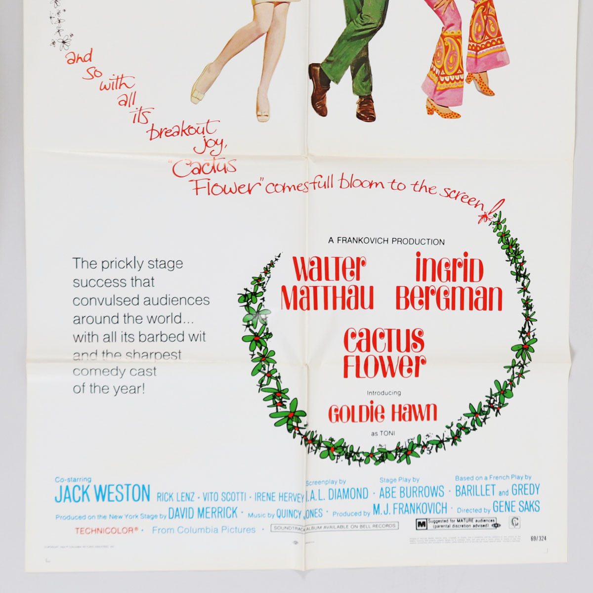This is original Cactus Flower movie poster from 1969. Presented is an original one sheet (27″ x 41″) movie poster. It is a folded unrestored poster that displays mild signs of display.