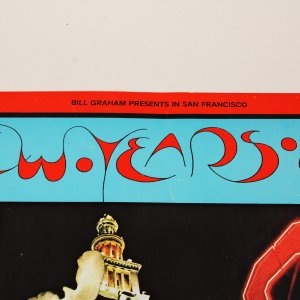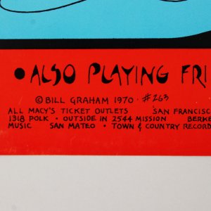The 1970 BG-263 Grateful Dead New Year’s Eve poster, featuring performances at Fillmore West and Winterland, is a notable piece of concert memorabilia. This artwork captures the essence of the era, showcasing the vibrant culture and musical innovation associated with the Grateful Dead. Its design reflects the artistic trends of the time, making it a significant collectible for enthusiasts and historians alike. The poster serves as a lasting tribute to the band’s influential presence in the music scene during the late 20th century.  There is some wear on the edges of the front of the poster. Please review the pictures provided for more information