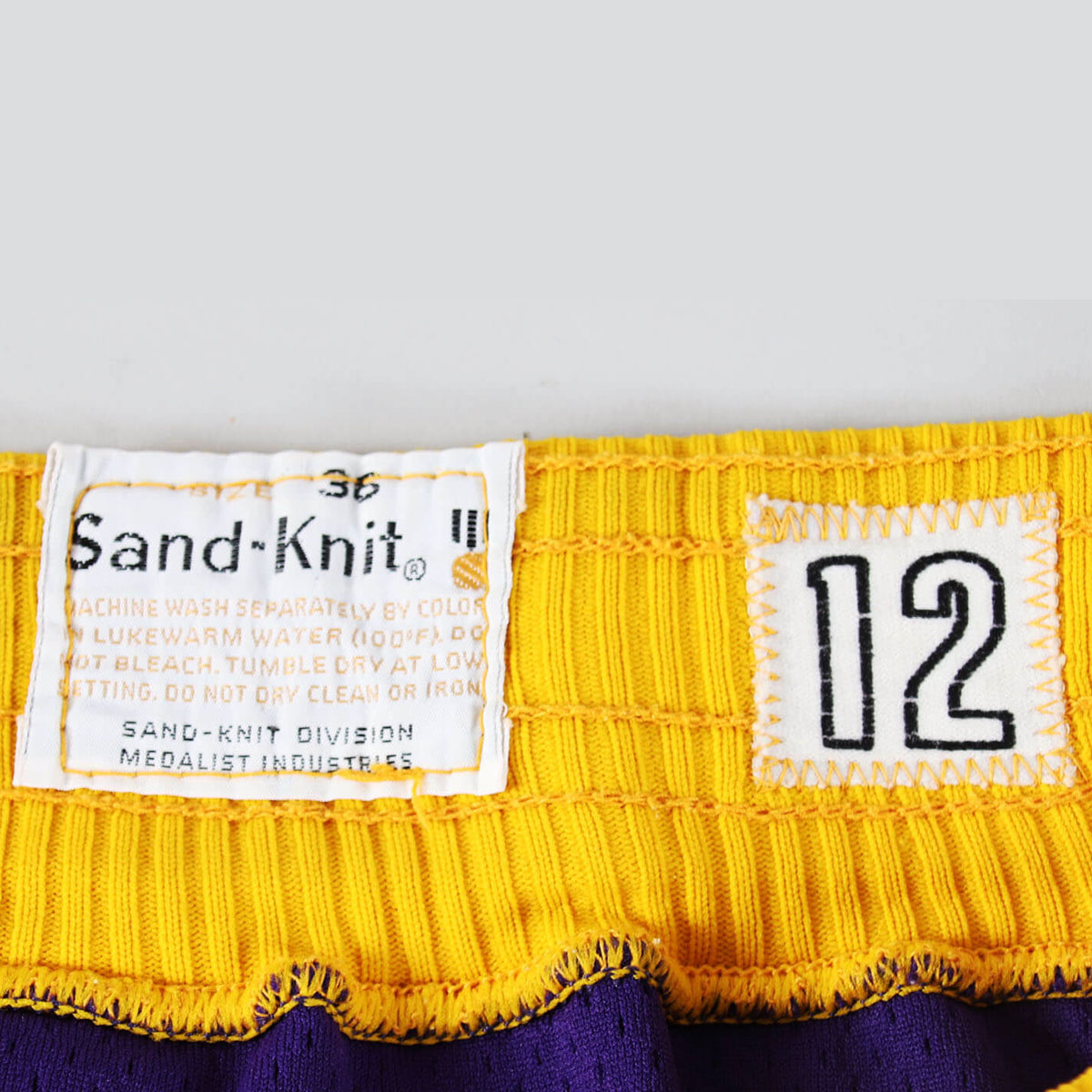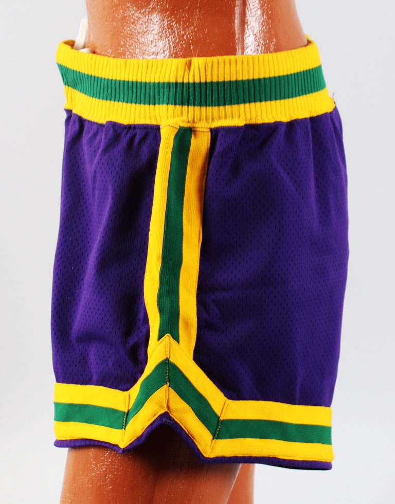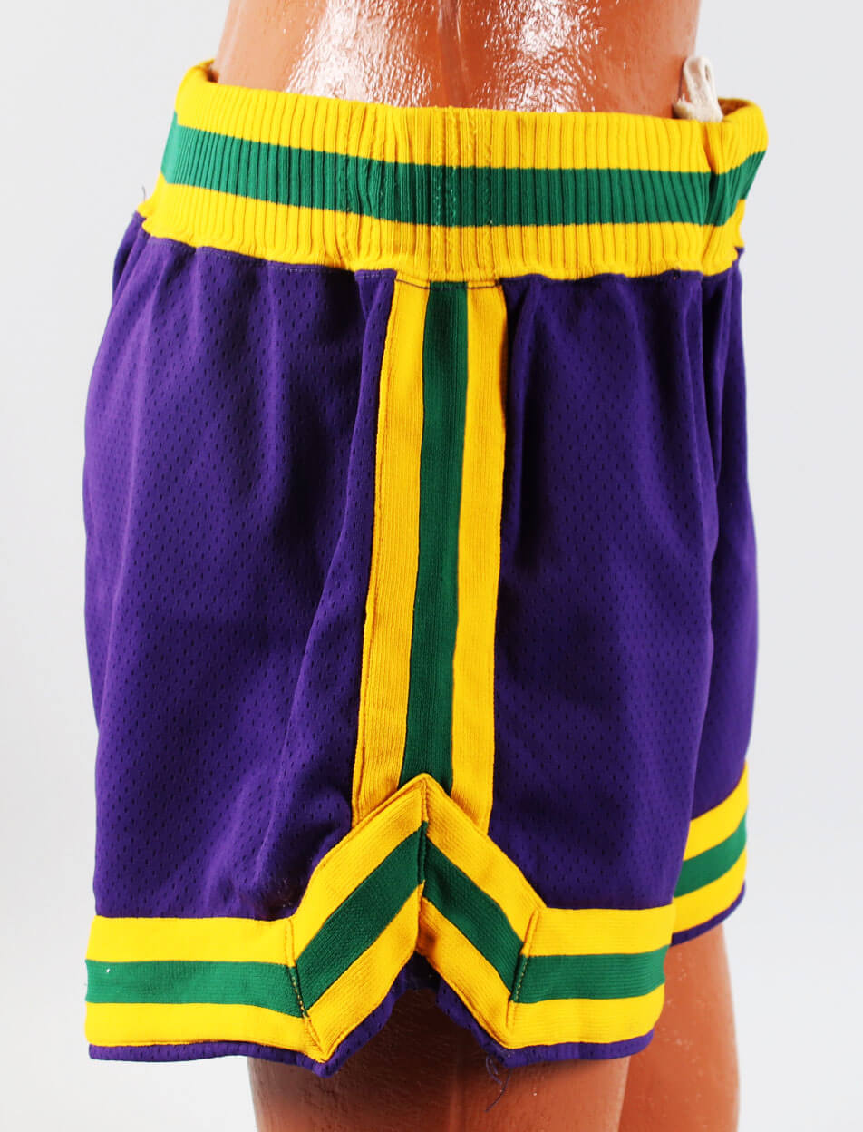 Presented is a pair of Coleman’s game worn shorts from the New Orleans era with excellent provenance. They are a purple mesh with yellow/green piping (elasticized) around the edges. The tagging in the waistband shows they were made by Sand Knit Medalist – Size (36). The labeling matches exemplars from Jazz in the late 1970’s. The interior labeling features his number #12 in a patch as an easy player identifier. In later years, these shorts were commonly recycled. They have a drawstring in the waistband and a liner in the interior crotch area. The garment shows solid wear throughout and are an exemplary rare display of player worn trunks. They originate from a team source.