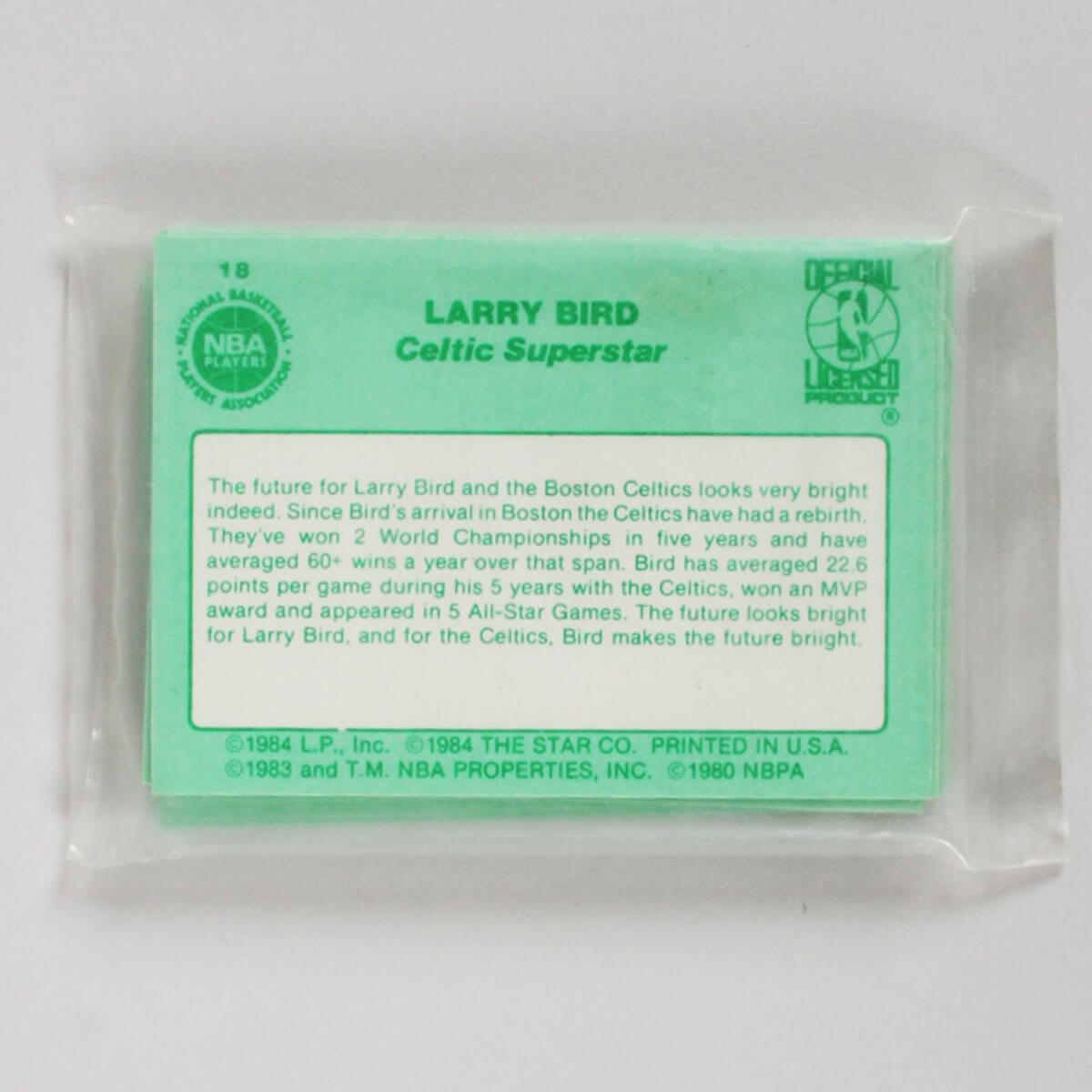 1984 Star Larry Bird Celtics Sealed Pack Set