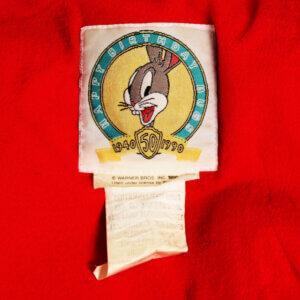 This vintage 1990 Looney Tunes Bugs Bunny green varsity jacket, available in size large, exemplifies classic style and nostalgia for enthusiasts and collectors alike. Crafted for both comfort and durability, the jacket has been worn and is in good condition.