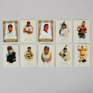 This is a complete set of 2006 Topps Allen & Ginter trading cards featuring baseball players such as Mike Tyson and Hulk Hogan. The set includes cards 1-350 and is stored in an album. It is perfect for collectors of sports trading cards and fans of the Major League (MLB). Topps manufactures the cards, and they are from the 2006 season. This set is a great addition to any sports memorabilia collection. This also includes the special Dick Perez set of 30 cards, specially made