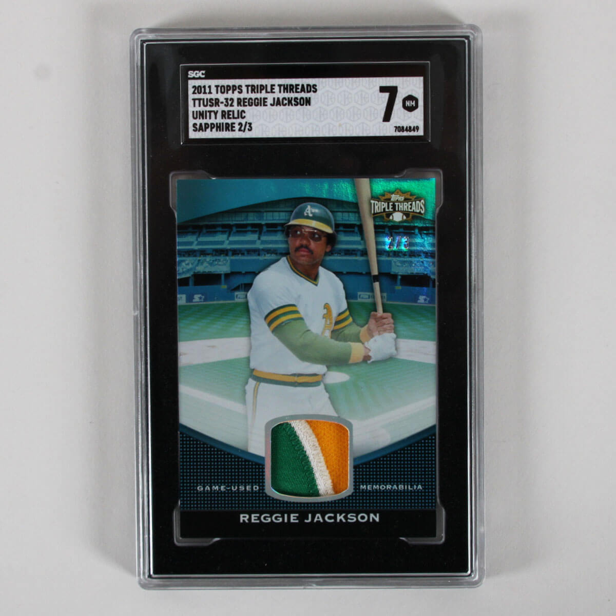 2011 Topps Triple Threads Reggie Jackson Graded Card Unity Relic Jersey Sapphire #TTUSR-32 SGC 7 2/3