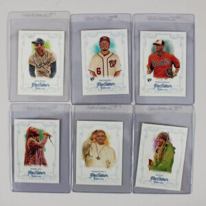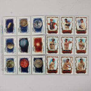 The 2013 Topps Allen & Ginter Complete Set comprises cards numbered 1 to 350, including sought-after short prints. Notably, this set features the rookie cards of prominent players such as Manny Machado and Anthony Rendon. This collection is highly regarded among enthusiasts for its unique design and comprehensive representation of the season’s key athletes. Also included in this group is a 115-card insert set, including Peacemakers, famous finds, inquiring minds, etc. Additionally, you get the 20-card insert set of Palaces & Strongholds, 10-card insert of Martial Mastery, one little corner lot of cards, and finally the 98-card baseball set called Across the Years. Collectors will appreciate the inclusion of both standard and special edition cards in this complete set.
