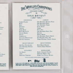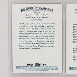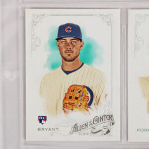 The 2015 Topps Allen & Ginter Baseball base set has 350 cards. As always, it’s a blend of veterans, rookies, champions from other areas of sport and life, and other notable personalities. This set features rookies like a Kris Bryant rookie #85 and Rocky Balboa #258.