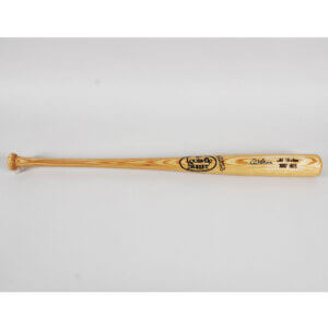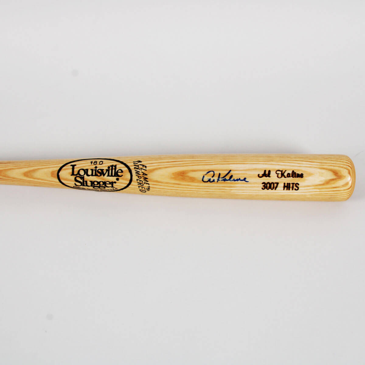 Offered here is a Al Kaline signed player model baseball bat. The signature is in blue felt tip and grades “7”. Authentication: JSA Basic Cert & Sticker