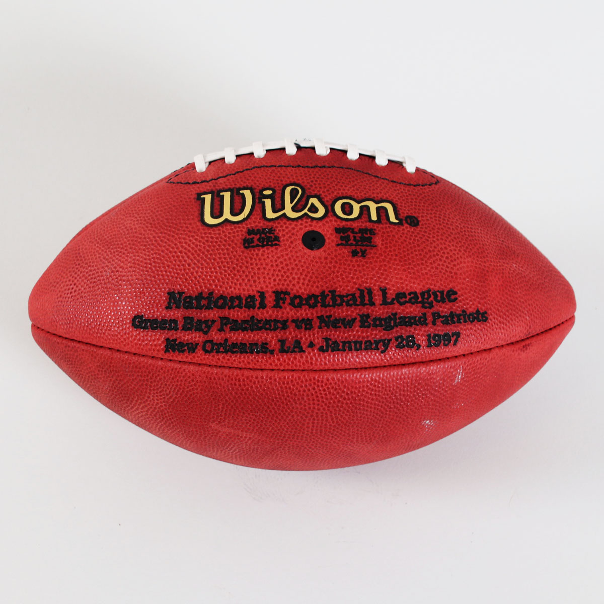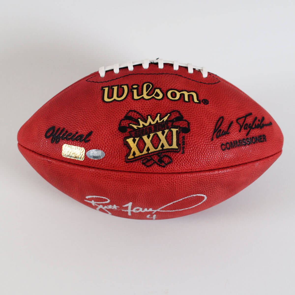Presented from the Jackson family is this Brett Favre signed football. The football is an Official NFL Wilson (Tagliabue) Super Bowl XXXI. It was signed on one of the panels by Favre in silver felt tip (“9”).
