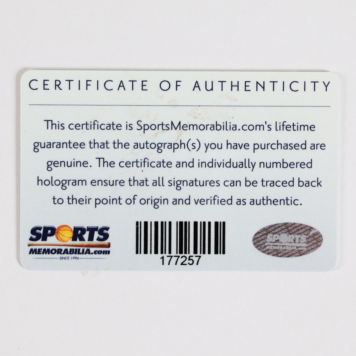 Authentication: SportsMemorabilia.com, Provenance Letter & Gridiron Hologram, 100% Authentic Team cert holo 11305