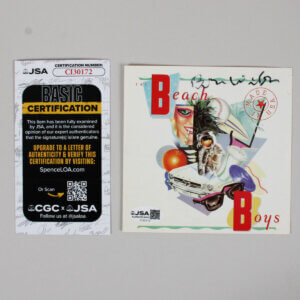 Offered here is Brian Wilson signed CD insert. The signature is in black felt tip and grades 7/8. Authentication: JSA Basic Cert & Sticker