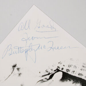 This 8×10 photo of Butterfly McQueen is a remarkable collectible, featuring her signature rendered in blue ballpoint pen. The autograph has been graded at a level of 7, indicating its clear and distinct presentation. Accompanying this item is a Certificate of Authenticity from JSA, ensuring its legitimacy and provenance. This signed photograph is a valuable addition for any serious memorabilia collector or admirer of McQueen’s legacy.