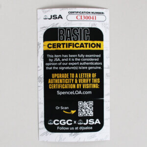 For cards and autographs appearing without professionally grading, we strive to accurately assess quality. However, BIDAMI does not guarantee their opinion and Buyer assumes the risk. BIDAMI is not responsible if a professional evaluation disagrees with BIDAMI’s opinion or with other Authenticators opinion.