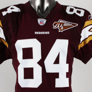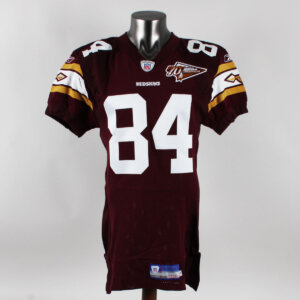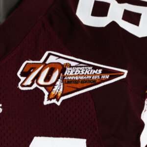 Presented is a Washington Redskins game jersey that was worn by Chris Doering in 2002. The maroon jersey features the Redskins name on the front and his jersey numerals on the front and verso in white tackle twill “84”. His name “DOERING” is applied in whiten to a nameplate on the verso. It features a special 70th Anniversary patch of the Redskins on the chest. Both sleeve ends are elasticized. Situated in the tail is a Reebok [size] 44 label, while the collar holds a “02-44” label. The jersey shows mild wear overall. A letter from Doering attends as part of the provenance.