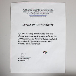 Be the first to review “Chris Doering Game Worn Jersey 2002 Redskins – COA”