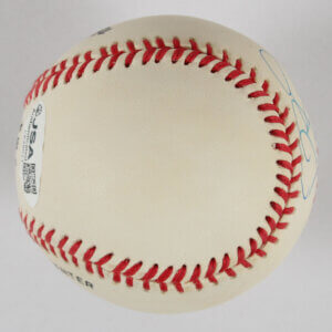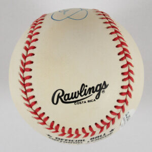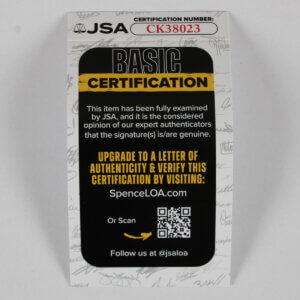 This baseball, expertly signed by the legendary Darryl Strawberry, is a remarkable collectible for any fan of the New York Mets. The signature, rendered in a striking blue ink, has been meticulously graded at a 9, reflecting its exceptional quality and clarity. Accompanied by a Certificate of Authenticity from JSA, this item ensures the legitimacy of the signature, making it a valuable addition to any sports memorabilia collection. The historical significance of Darryl Strawberry, a pivotal figure in the Mets’ success during the late 1980s, adds to the allure of this piece. Displaying this signed baseball not only honors the legacy of a Hall of Fame talent but also serves as a testament to the rich history of baseball.