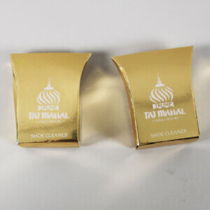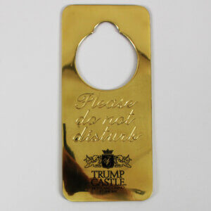 This collection of 9 items from the iconic Trump Castle and Taj Mahal Hotel dates back to the 1980s. Included are a solid brass Do Not Disturb door hanger, a unique Trump Castle New Jersey Devils hockey puck, and a Trump Castle carrying case jewelry box, all showcasing the distinct branding of Trump properties. Additionally, the collection offers an intriguing glass jar with enclosed dice, two unopened shoe cleaners from Trump Taj Mahal, and a notepad with a pencil, making it a valuable assemblage for collectors and enthusiasts alike. This assortment not only reflects the grandeur of the era but also serves as a historical tribute to the Trump hospitality legacy—a curated, exclusive lot.