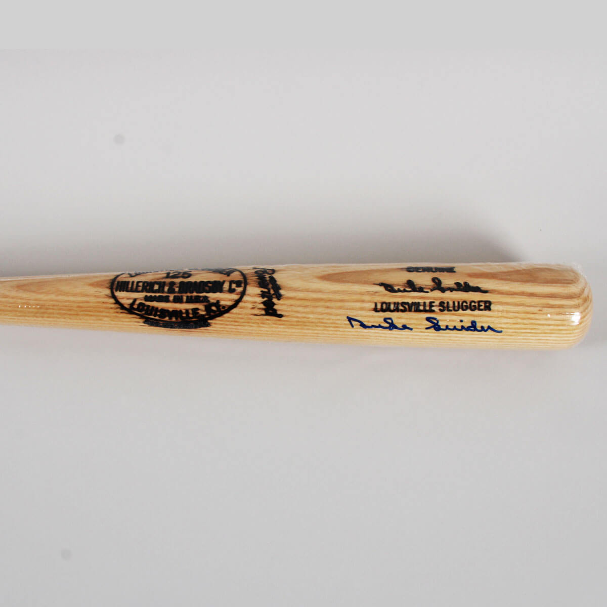 Offered here is a Duke Snider signed player model baseball bat. The signature is in blue felt tip and grades “10”. Authentication: JSA Basic Cert & Sticker