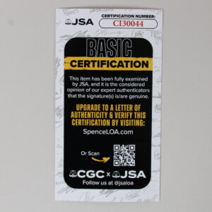 8. Each item must have the accepted authentication. PSA, JSA, Steiner, On-Line Authentics, UDA, 100% Authentic. Please inquire for the entire list of acceptable authenticators.