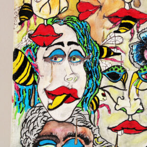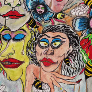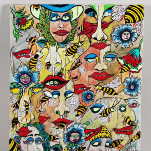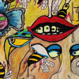 Title: Bee-Orgie Orchestra   Size: 16 x 24  Medium:  Acrylic, Oil Pastels