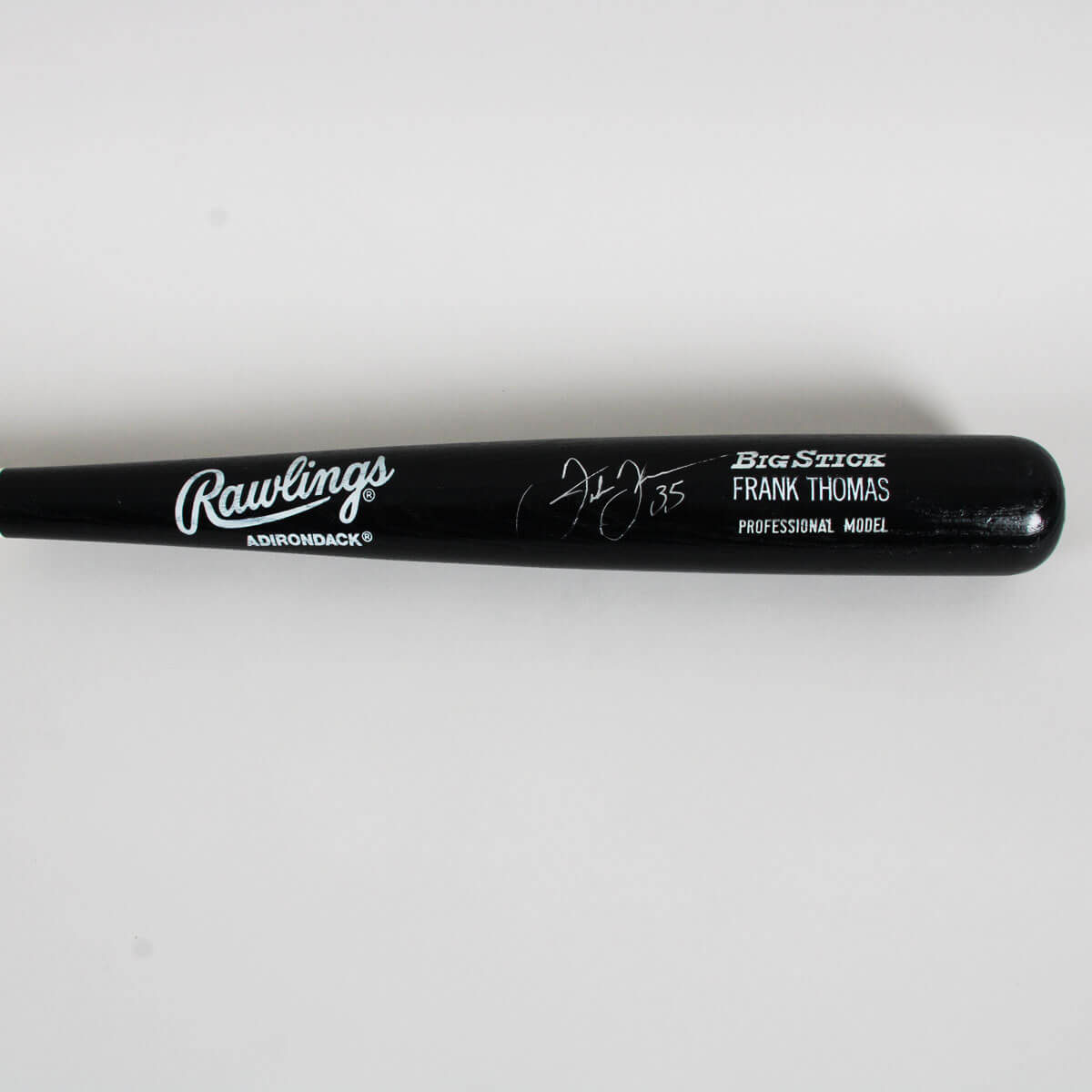 Offered here is a Frank Thomas signed player model baseball bat. The signature is in silver felt tip and grades “7”. Authentication: JSA Basic Cert & Sticker