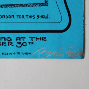 The show advertised the last show held at Winterland featuring the Grateful Dead, The Blues Brothers, and New Riders of the Purple Sage. Randy Tuten has signed this poster in silver ink. it measures 16″ x 20″