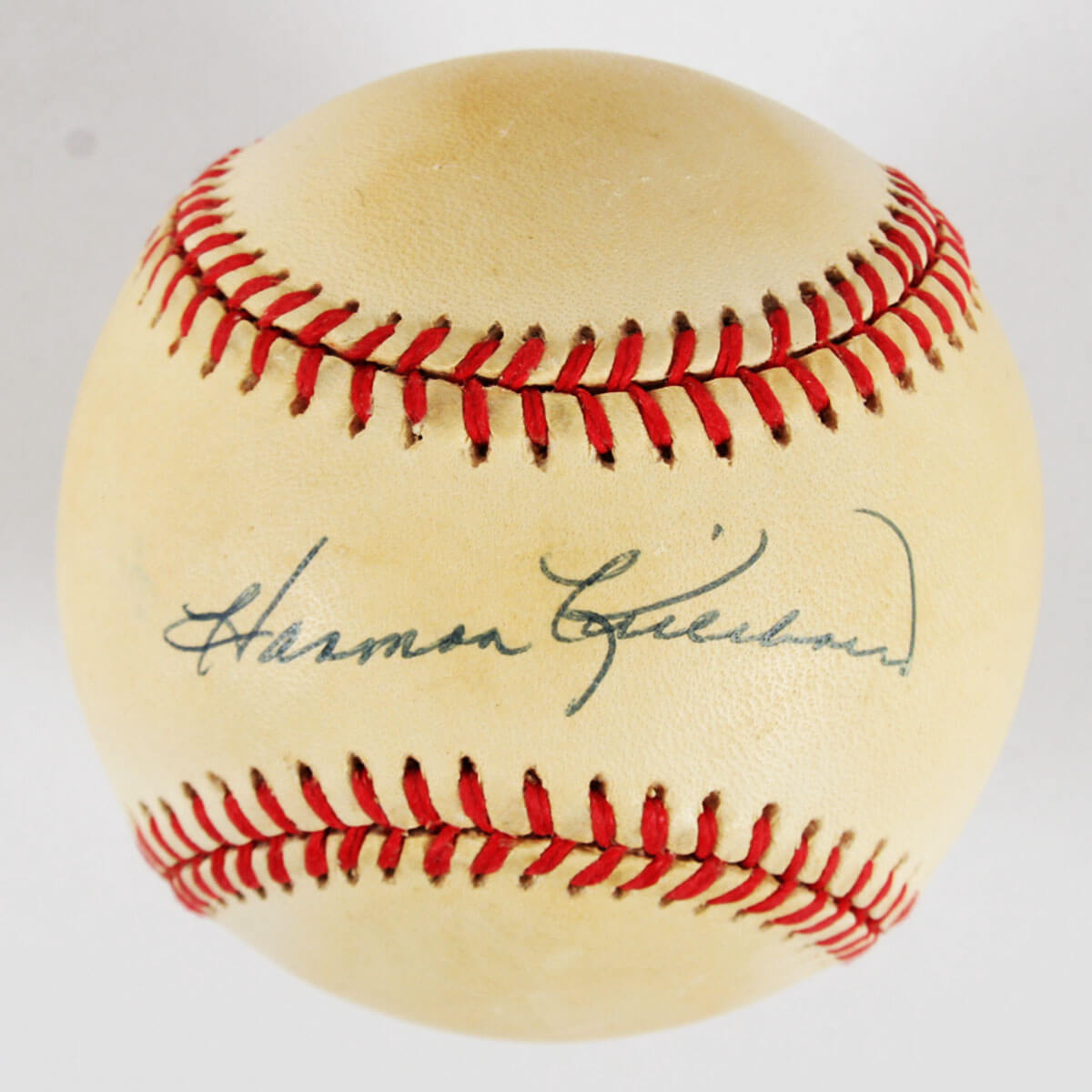 Harmon Killebrew brilliantly signed the sweet spot of this OAL (Budig) baseball in blue ballpoint (“9”). The baseball exhibits toning throughout.