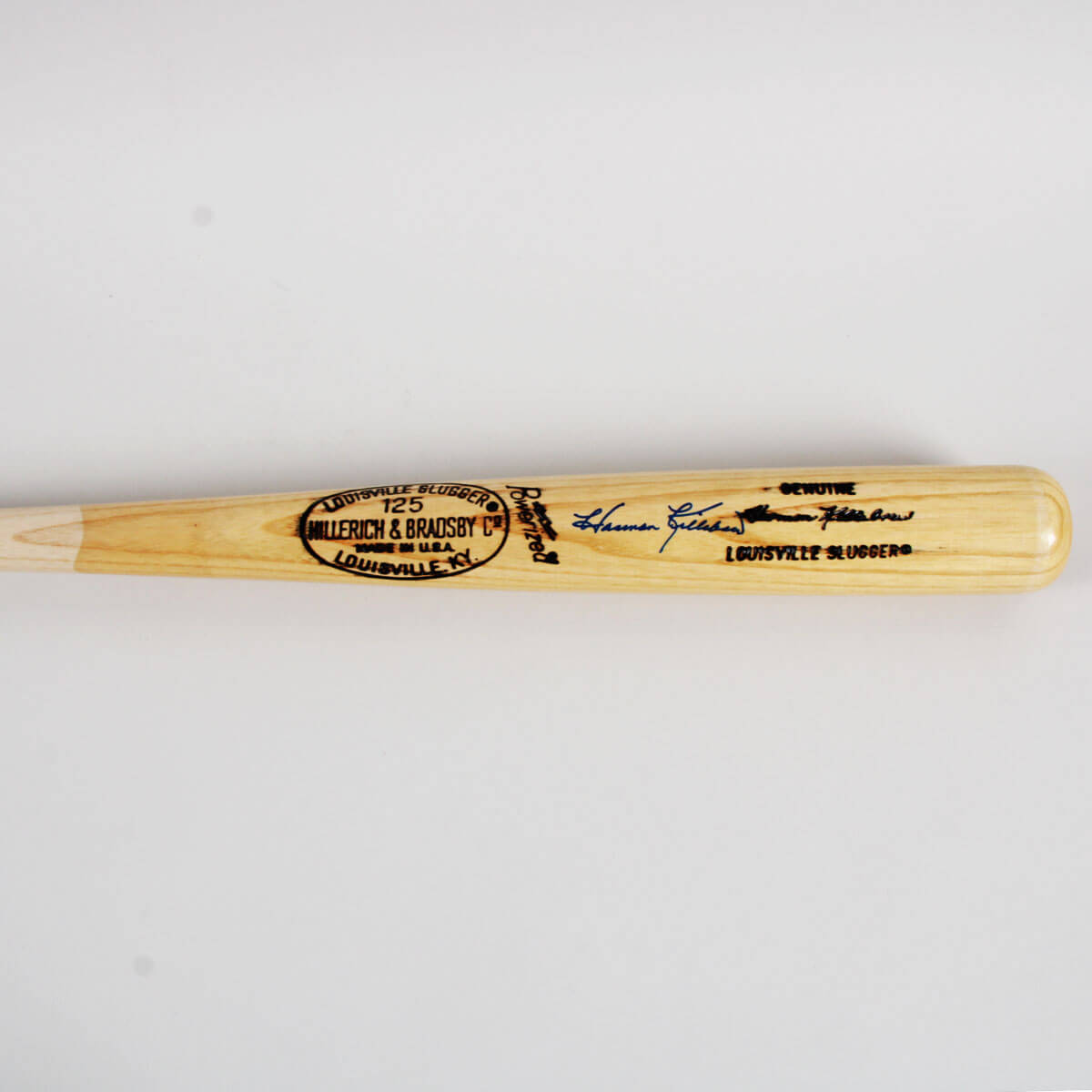 Offered here is a Harmon Killebrew signed player model baseball bat. The signature is in blue felt tip and grades “10”. Authentication: JSA Basic Cert & Sticker