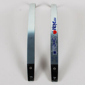 Offered for sale is a Hoyt recurve compound bow riser customized with a red, white, and blue American flag theme. It comes in the original box and is in mint, unused condition. Hoyt Archery is an American manufacturer known for its competition bows, which are frequently used in the Olympics. The image primarily shows the bow’s riser and a wooden grip.
