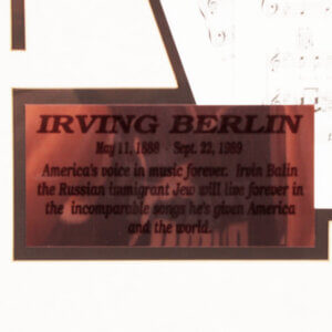 Irving Berlin was a Russian-born American composer and songwriter. His music forms a large part of the Great American Songbook. Berlin received numerous honors including an Academy Award, a Grammy Award, and a Tony Award. He also received the Presidential Medal of Freedom from President Gerald R. Ford in 1977. The broadcast journalist Walter Cronkite stated he “helped write the story of this country, capturing the best of who we are and the dreams that shape our lives”.