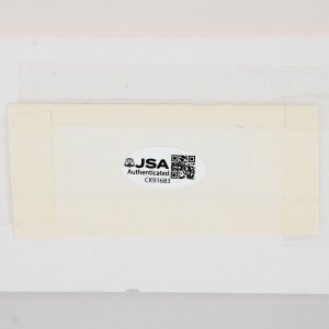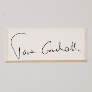 Offered here is a Jane Goodall signed (1″ x 2-3/4″) cut with a National Geographic Magazine cover display.The signature is in black pen on the cut with the full display (in matte) measuring 11×14.