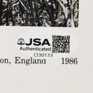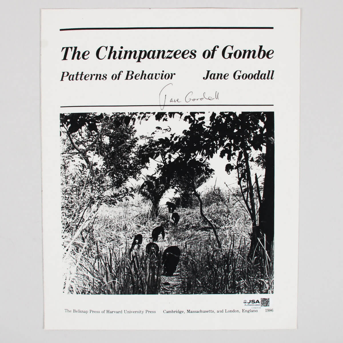 Offered here is a Jane Goodall signed promo photo. The signature is in black and grades “9”. Authentication: JSA Basic Cert & Sticker