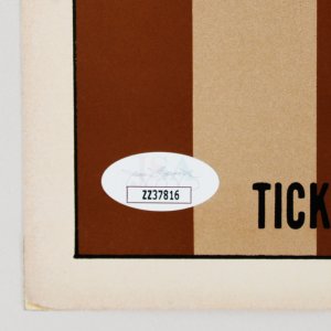This is a remarkable item featuring the signatures of Joe Cocker (signed in black Sharpie) and Roger McGuinn (signed in silver Sharpie) on The Byrds’ concert poster No. 177. This particular piece is a second printing from 1969, measuring 14 by 21 inches. Its historical significance and the association with renowned figures in music make it a valuable addition for collectors and enthusiasts alike. The poster not only commemorates a notable event in music history but also serves as a testament to the enduring legacy of these iconic artists. Comes with a full letter of authenticity from JSA.