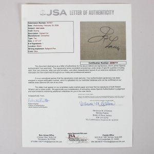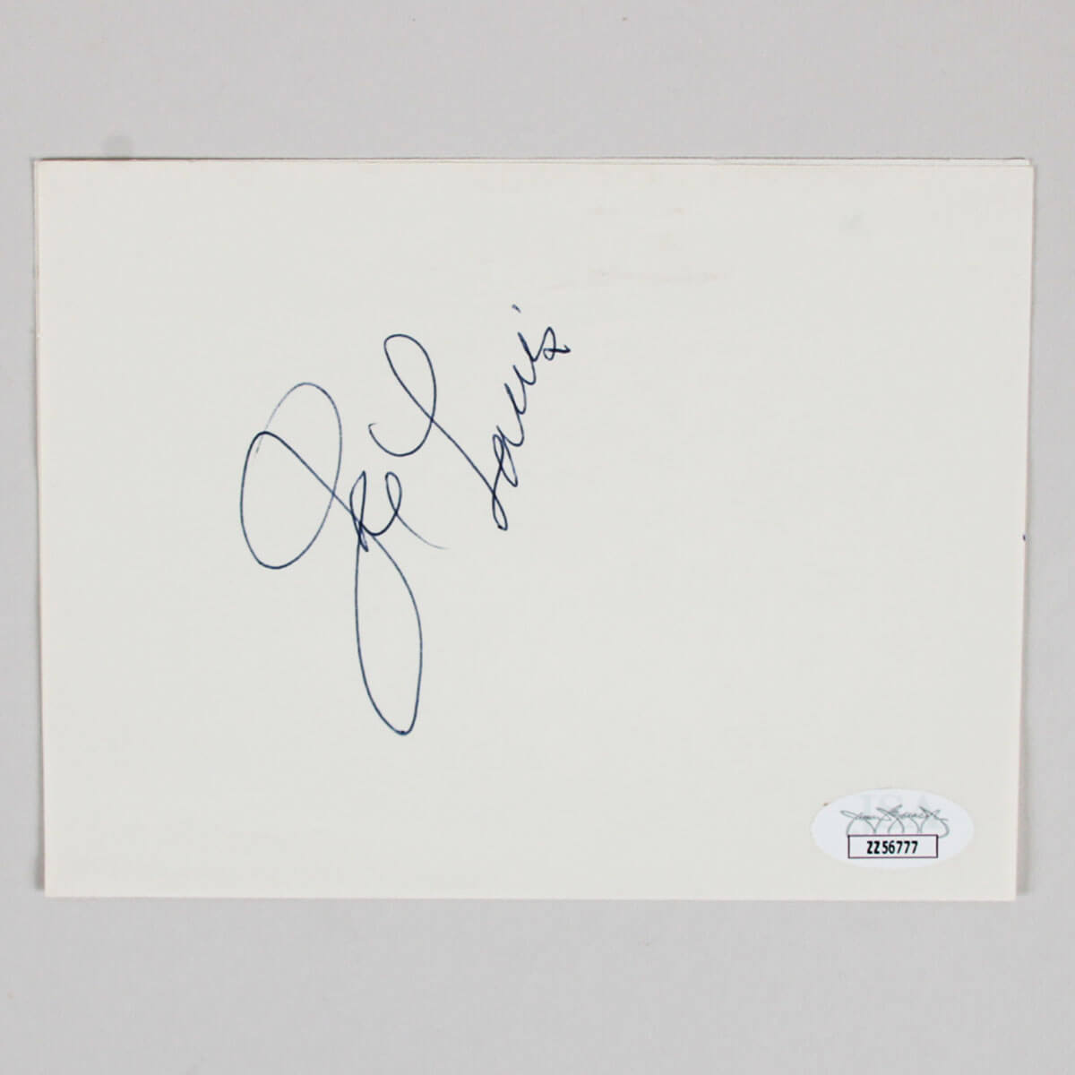 This item features a signed album page from the legendary boxer Joe Louis, measuring 4.5 x 6 inches. The signature is rendered in black ballpoint pen, exhibiting a quality grade of 8 to 9, indicative of its clear and crisp presentation. Accompanying this authentic piece is a Certificate of Authenticity (COA) from JSA, ensuring its provenance and legitimacy. The historical significance of Joe Louis, a prominent figure in boxing history, adds considerable value to this collectible. This signed album page would be an esteemed addition to any sports memorabilia collection, appealing to enthusiasts and historians alike.