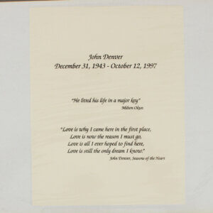 John Denver Memorial Archival Album in Memorandum 1997 – 32 Pages