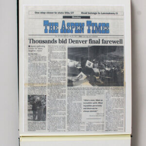 The John Denver Memorial Archival Album serves as a poignant tribute to the life and legacy of the iconic singer-songwriter. This meticulously curated 32-page collection captures the essence of his music and personal philosophy, providing an invaluable resource for fans and scholars alike. Through a combination of rare photographs, insightful commentary, and highlights from his illustrious career, the album offers a comprehensive reflection on Denver’s enduring impact on the world of music and environmental advocacy. It stands as a fitting homage to an artist whose contributions continue to resonate across generations. This is a top-quality archival album. John Denver died on October 18, 1997, and includes many items from his life, with some photos.