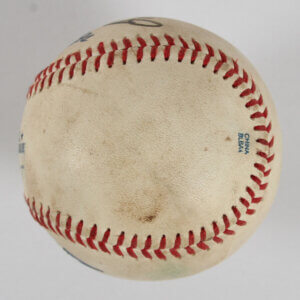 Juan Centeno signed a side panel of this unofficial baseball in black felt tip (“9”). The baseball exhibits use with soiling, marks etc.
