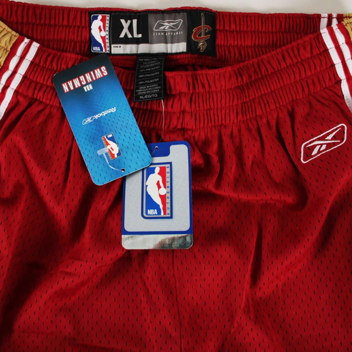 Presented is a LeBron James Cleveland Cavaliers Reebok NBA Swingman uniform which includes the jersey and shorts. The jersey is a size XXL with tags still affixed. The matching shorts are XL without tags.