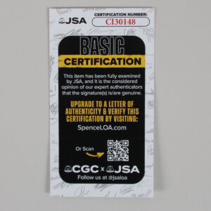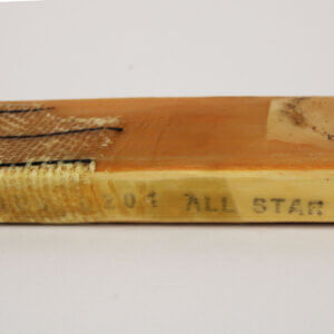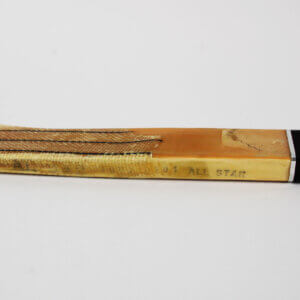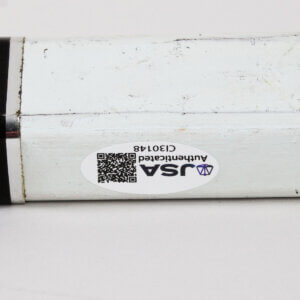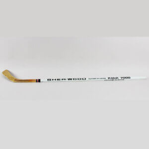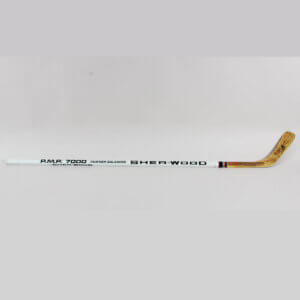It’s a Sher-Wood PMP 7000 feather balanced model and has “ROBITAILLE 20” stamped on the side. Further stamping shows “0201 ALL STAR”. The stick exhibits mild-to-moderate overall use. Robitaille has personally signed the blade of the stick. Luc is a member of the Hockey Hall of Fame as well as the exclusive 600 Goal Club. He signed it on the blade in black felt tip (“9”).
