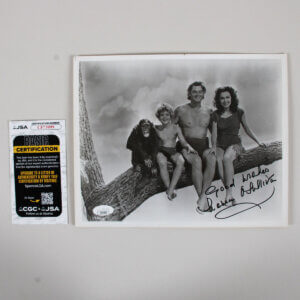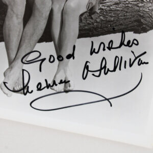 This exquisite 8×10 photograph of Maureen O’Sullivan is adorned with her authentic signature, elegantly penned in black felt. The inscription Good Wishes adds a personal touch, making it a cherished collectible for fans and memorabilia enthusiasts alike. Accompanied by a Certificate of Authenticity from JSA, this item assures its legitimacy and value. This signed photo represents a remarkable piece of cinematic history, celebrating the legacy of a talented actress.