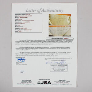 One thing is for sure as wherever Muhammad Ali went he garnered attention. He was known as “The Greatest” for a reason. From a chance encounter back in the 1970s between a member of the Pittsburgh Steelers and Ali comes this rare treasure. Ali generously signed this pair of his personal fight gloves and gave them to him. They are black Everlast (8 oz.) and were signed by Ali in black ink on both in the interior end portion (“9”). . The provenance also relays that the gloves were then passed down through the player’s family.