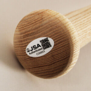 Offered here is a Reggie Jackson signed baseball bat. The signature is in silver felt tip and grades “9”. Authentication: JSA Basic Cert & Sticker