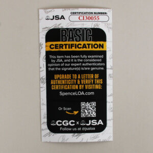 100% Guarantee. We may be able to issue refunds on items, under certain conditions that have been legally (established by or recognized by a court of law) found to be fraudulent, or unauthentic. We always make an effort to offer Customer Service to our clients. Items are sold with the Letter of Authenticity as described and items will not be refunded due to differing opinions of other companies, people, industry people, Authenticator’s opinions and or different authentication process.